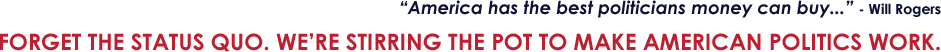 "America has the best politicians money can buy..." - Will Rogers Forget the status quo. We're stirring the pot to make American politics work.